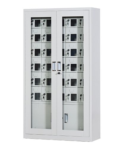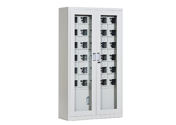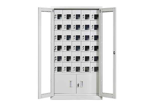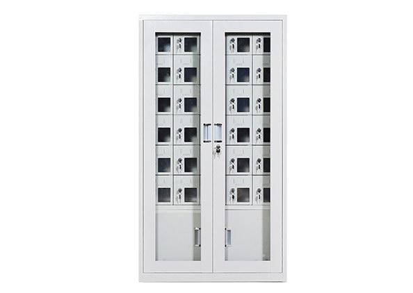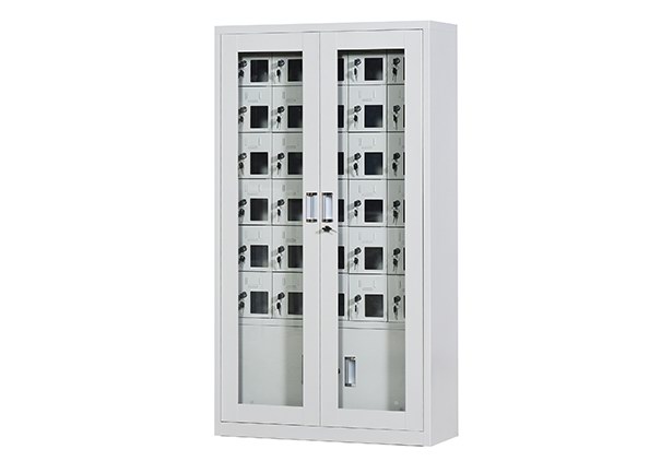 手機保密柜正面為對開金屬邊框玻璃大門,便于觀察柜內(nèi)情況,堅固透亮,美觀大方。